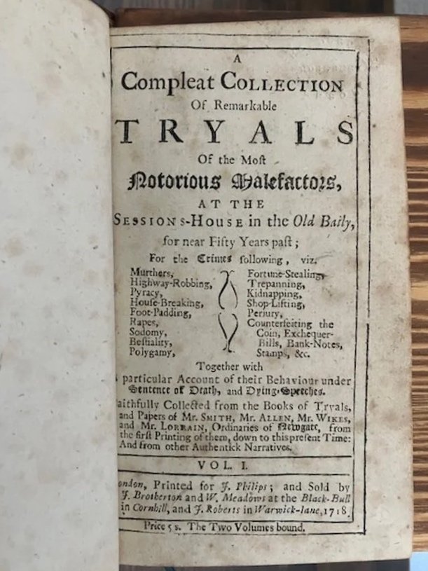 A Compleat Collection of Remarkable Tryals of the Most Notorious Malefactors...Together with A particular account of their Behaviour under Sentence of Death, and Dying Speeches...(in 2 vols.)
